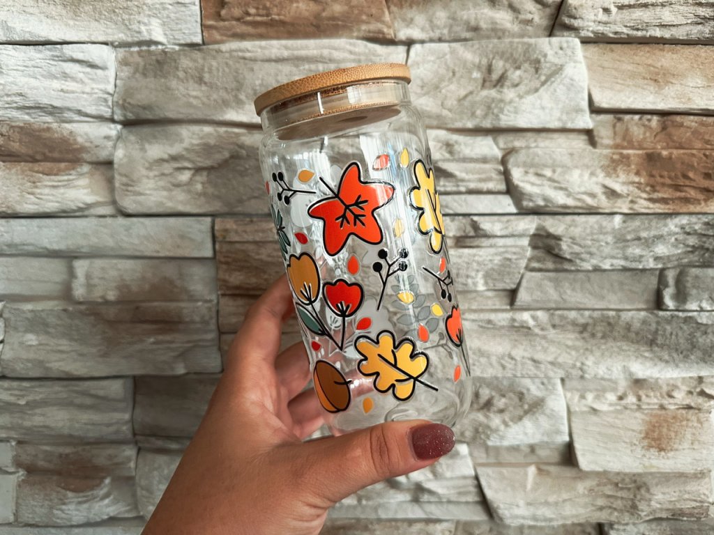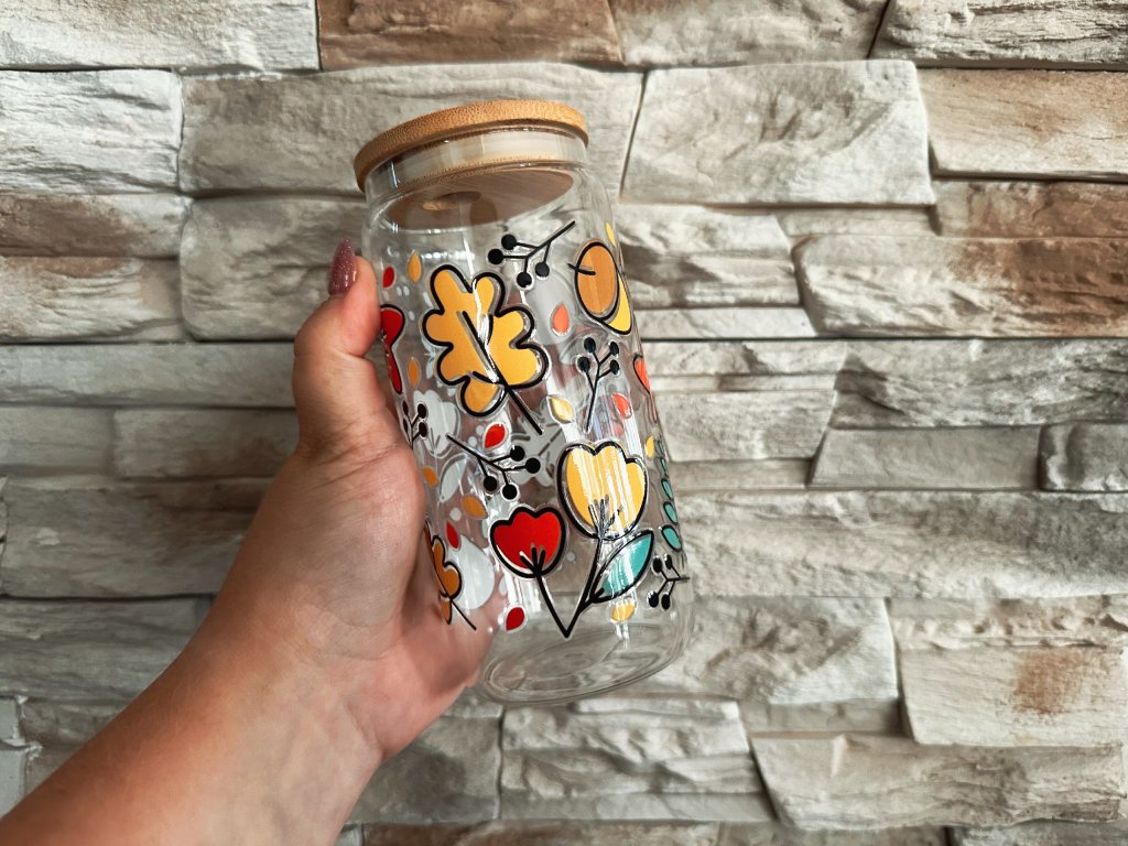 Stylová skleněná sklenička s bambusovým víčkem a brčkem je ideální pro všechny, kdo mají rádi originální doplňky. Barevný podzimní motiv dodá šmrnc každému pití – ať už si vychutnáváte ranní kávu, smoothie nebo čaj. Díky kvalitnímu materiálu je sklenička nejen praktická, ale i šetrná k přírodě.