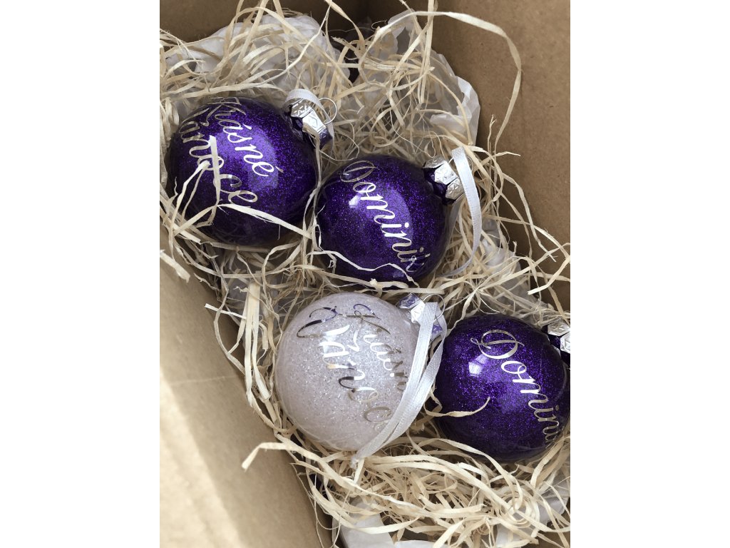 Tmavě fialová ozdoba se jménem ø 6 cm